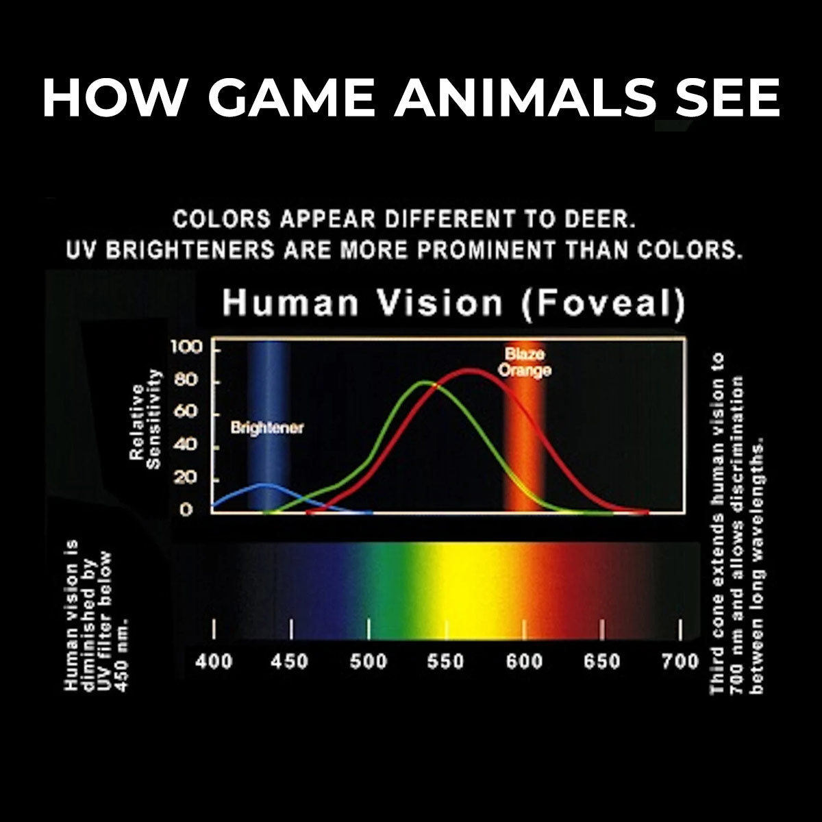 Most game animals possess superior motion detection and can distinguish colors and contrasts humans cannot. Photocamouflage™ employs reduced black color technology and special inks that filter out blue light - wavelengths particularly visible to deer, elk, and other ungulates.
