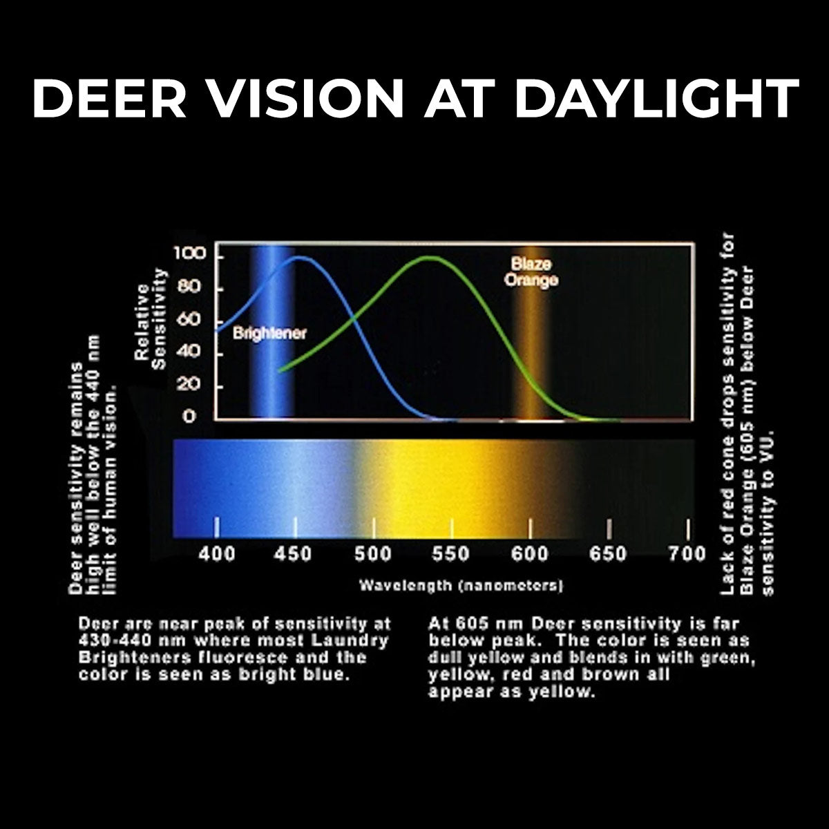 Deer possess dichromatic vision with peak sensitivity to blue and green wavelengths (450-537nm), lacking the red-sensitive photoreceptors humans have. Their enhanced rod density provides superior low-light vision and motion detection but limited color discrimination. Photocamouflage™ exploits these visual characteristics through reduced black color technology and blue light filtering inks. By eliminating wavelengths deer detect most effectively while incorporating natural contrast patterns their dichromatic vision cannot distinguish, Photocamouflage™ achieves optical invisibility matched to cervid visual perception rather than human assumptions.