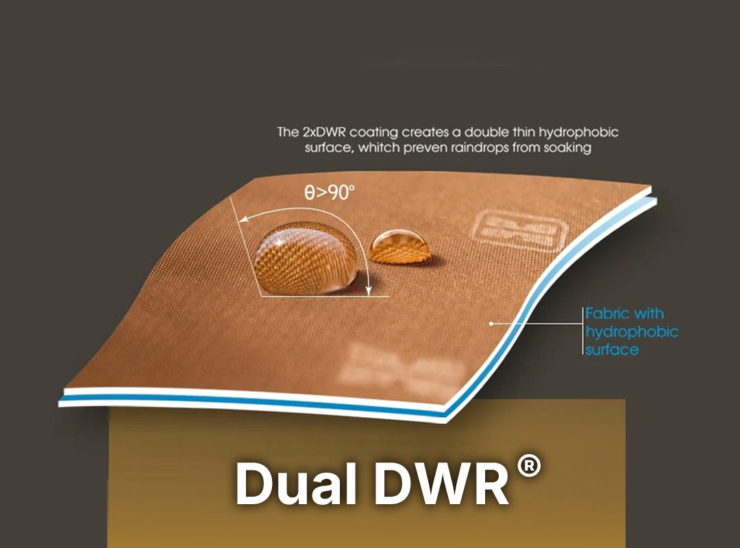 High-performance protective coating added to the fabric making it resistant to wetting and soiling. It creates a molecular lamination around the textile fibers that prevent the outer layer of the garment from becoming saturated with water, dirt or blood and makes it easier to clean and maintain. The DWR® keeps you dry and comfortable when it rains as it doesn't allow the raindrops to soak in.